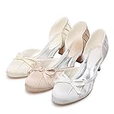Deals on Women's Top Quality Satin Upper Mid Heel Closed-toes With Bow Wedding Shoes/ Bridal Shoes has ONLY FEW ITEMS LEFT!